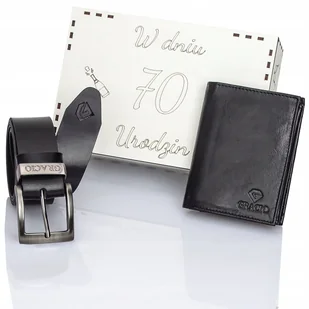 Prezent na 70 urodziny dla taty zestaw skórzany pasek portfel Gracio 140 CM Pasek i portfel na 70 urodziny, zaprezentowane w eleganckim, drewnianym pudełku, to nie tylko zwykły zestaw dodatków, lecz wyjątkowy symbol szlachetności i piękna. Drewniane pudełko dodaje niepowtarzalnego charakteru prezentowi, emanując subtelną elegancją i wysoką jakością wykonania. Elegancki, czarny pasek marki Gracio® [BESTSELLER] 1️⃣ Wyjątkowy w 100% wykonany ze skóry naturalnej, zapewniającej długie użytkowanie. Wyrazisty brand firmowy na zakończeniu paska nadaje charakteru marki i produktu. 2️⃣ Pasek w całości wykonany z WYSOKIEJ JAKOŚCI SKÓRY NATURALNEJ.