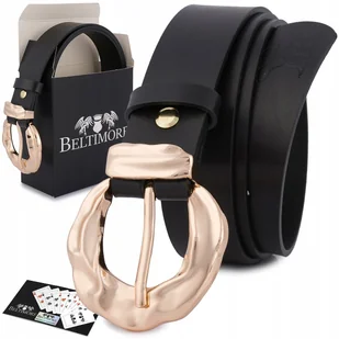 Skórzany pasek damski do spodni sukienki czarna skóra nat 3 cm Beltimore D96 czarny r.110-125 cm