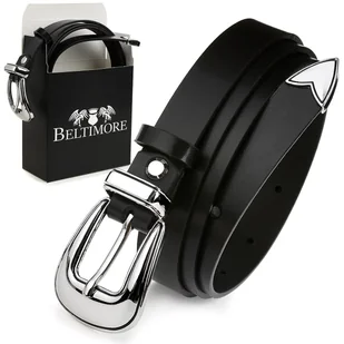 Skórzany pasek damski srebrny pas kowbojki BELTIMORE D53 czarny r.105-120 cm