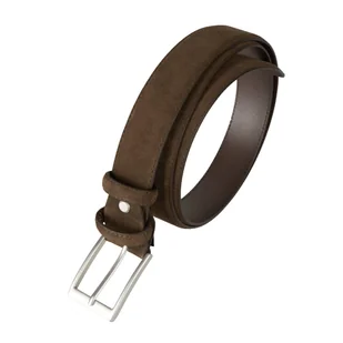 Zamszowy pasek do spodni skórzany brązowy z metalową sprzączką w kolorze srebrnym. Dodaj odrobinę klasyki i wyrafinowania do swojej garderoby dzięki naszemu ...