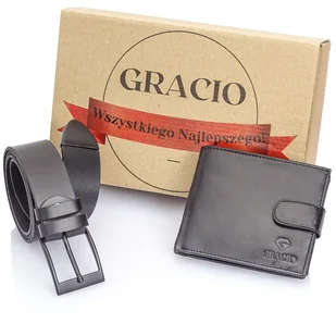 PRZY ZAKUPIE POWIADOM NAS O DŁUGOŚCI PASKA JAKĄ MAMY WYSŁAĆ W WIADOMOŚCI DO SPRZEDAJACEGO. Szykowny męski zestaw portfel i pasek skóra naturalna dla Męża Taty GRACIO Elegancki zestaw upominkowy dla Mężczyzny. Zestaw galanterii dla ceniących klasę mężczyzn. W skład zestawu wchodzi: Portfel Gracio, wysokiej jakości skóra naturalna Skórzany czarny pasek Gracio, pasek wykonany ze skóry naturalnej.