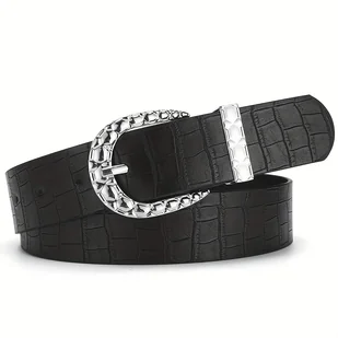TEMU 2025 Najnowszy Damski Kamień Teksturowany Retro Srebrny Pasek PU - Stylowe Czarno-Bruźdzone Paski z Trwałymi Sztucznymi Paskami, Idealne do