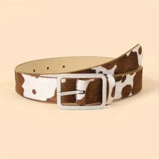 TEMU Damski matowy srebrny pasek z prostokątną klamrą z PU skóry z panterką i złotym wykończeniem - idealny do sukien, i codziennych stylizacji