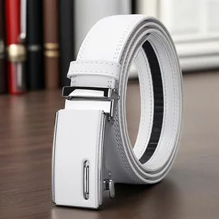 TEMU Męski biały pasek z grzechotką i automatyczną klamrą ze stopu - Idealny do dżinsów, niezbędny dla profesjonalistów biznesowych, doskonały na