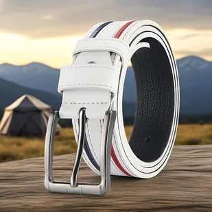 TEMU Stylowy biaナZ pas mト冱ki z czerwonymi i niebieskimi akcentami - regulowana klamra, idealny do odzieナシy codziennej - idealny prezent dla rodziny i