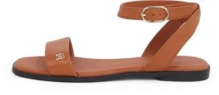 TOMMY HILFIGER Damski pasek na kostkę skórzany sandał płaski, brązowy (kora cynamonu), 35 UK, Brązowa kora cynamonu, 38 EU