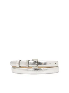 Wąski pasek wykonany z naturalnej skóry w srebrnym kolorze to nowoczesny i elegancki dodatek, który wprowadza subtelny, metaliczny akcent do każdej stylizacji. Jego mieniąca się powierzchnia nadaje mu futurystyczny, a zarazem wyrafinowany wygląd, idealnie komponując się zarówno z codziennymi, jak i bardziej formalnymi zestawami. Sprzączka paska jest prosta, również w srebrnym kolorze, co tworzy spójną, minimalistyczną całość. Jej geometryczny, prosty kształt podkreśla nowoczesny charakter paska. Dodatkowym elementem jest metalowa szlufka ozdobiona logotypem marki, która dyskretnie podkreśla wysoką jakość i prestiż akcesorium.
