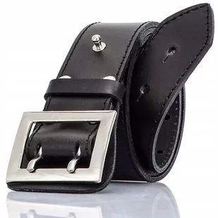 WOJSKOWY Pas CZARNY Skora NATURALNA DUZA Klamra Srebrna 150 Dlugi Policyjny WOJSKOWY PASEK SKÓRZANY WZOROWANY NA STYL OFICERA PASA POLICYJNEGO ⚫ Skórzany, szeroki pas wojskowy to idealny wybór dla panów, którzy lubią dodatki w militarnym stylu. Doskonale sprawdzi się jako pas do jeansów z szerokimi szlufkami (szer. 4,4-4,5 cm) lub do spodni typu bojówki - uniwersalne zastosowanie ⚫ Pasek jest solidnie zanitowany (grubymi nićmi ), co uniemożliwia odłączenie klamry od pasa. Zapinany jest na klamrę w kolorze srebra z dwoma sztyftami oraz dodatkowym bolcem stabilizującym. ⚫ Wykonano go z mocnej, skóry w kolorze czarnym, która charakteryzuje się niezwykłą wytrzymałością. Nadając paskowi charakterystyczny wygląd.