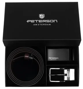 Zestaw pasek męski skórzany dwustronny z dwoma klamrami na prezent Peterson czarny brązowy
