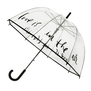 Automatyczna lekka i wytrzymała parasolka damska holenderskiej marki Impliva. Uwaga: pierwsze zdjęcie przedstawia rzeczywisty wygląd parasolki, pozostałe dwa zdjęcia pokazują ten sam model na przykładzie innego motywu. ✔Przezroczysty materiał ułatwia orientację i wizualnie podkreśla lekkość parasolki. ✔Czasza zdobiona czarnym napisem "Love is in the air" ✔Została wyposażona w bardzo wygodną do trzymania w dłoni rączkę. ✔Parasolka jest głęboka, dzięki czemu bardzo dobrze chroni przed deszczem i wiatrem.