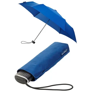 Damska, krótka płaska parasolka firmy Impliwa w kolorze granatowym. Wygodna, składana na trzy, bardzo lekka i malutka - idealna do torebki czy też plecaka. Konstrukcja oparta na chromowanym stelażu zapewnia wytrzymałość podczas deszczu. Dobrze wyprofilowana płaska plastikowa rączka zapewnia komfort trzymania, a dodatkowy uchwyt z gumki ułatwia przenoszenie. Parasolka w pokrowcu w kolorze czaszy.