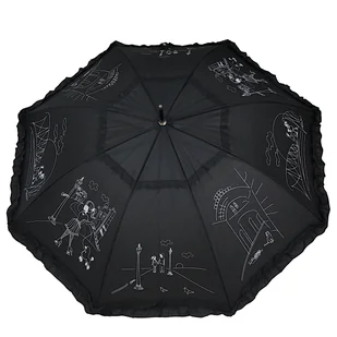 Elegancki parasol damski w kolorze czarnym to idealne rozwiązanie dla każdej kobiety, która pragnie połączyć styl z funkcjonalnością. Ten zjawiskowy parasol z falbanką wyróżnia się nowoczesnym designem oraz solidnym wykonaniem, co sprawia, że z pewnością zaspokoi nawet najbardziej wymagające gusta. Dzięki jednosekcyjnemu automatowi o długości 85 cm, można go łatwo otworzyć jedną ręką, co zapewnia wygodę w codziennym użytkowaniu. Wysoka jakość użytych materiałów to kluczowy aspekt tego produktu. Stelaż wykonany z włókien szklanych oraz stali wysokiej jakości zapewnia doskonałą trwałość i wytrzymałość, natomiast pokrycie poliesterem Pongee z elegancką falbanką nie tylko przyciąga wzrok, ale także gwarantuje odporność na warunki atmosferyczne.