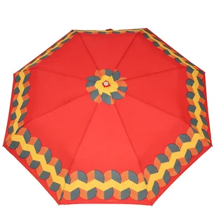 Parasolka damska automatyczna "Tarcze na czerwonym" to doskonałe rozwiązanie na deszczowe dni, które łączy funkcjonalność z elegancją. Parasolka posiada trzy...