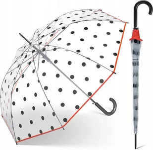 TYP: PARASOL MARKA: HAPPY RAIN MODEL: 40986 KOLOR: bezbarwny, z elementami czerwonego i czarnego WYMIARY: długość 85 cm, średnica czaszy 100 cm ILOŚĆ ŻEBER: ...