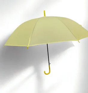 Parasolka EVA dla dorosłych – pastelowy żółty Elegancka, lekka i niezawodna w mieście. Transparentna czasza z tworzywa EVA w pastelowym żółtym kolorze chroni przed deszczem, a lakierowany, czarny stelaż z 8 żeber trzyma formę na wietrze. Szczelny czubek (anti-leak) ogranicza przeciekanie od góry, a ergonomiczny uchwyt „J” dobrze leży w dłoni i łatwo zawiesisz go na wieszaku po wejściu do biura czy domu. Lekki i poręczny Konstrukcja z tworzywa EVA i waga ok. 267 g sprawiają, że parasol nie męczy dłoni nawet przy dłuższym spacerze.