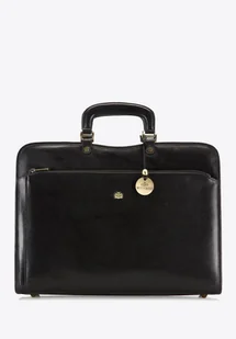 Teczka skórzana z kieszenią na suwak czarna