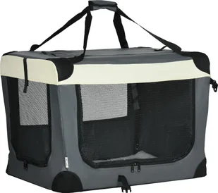 PawHut skrzynia dla psa składana torba transportowa dla psa z poduszką 70 x 51 x 50 cm skrzynia transportowa dla małych psów torba podróżna skrzynia transportowa dla zwierząt na zewnątrz szara+czarna