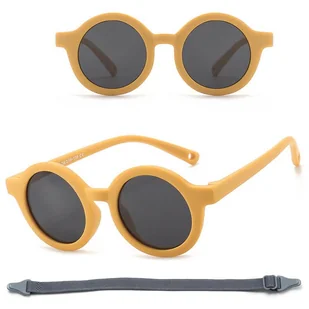 Przeciwsłoneczne okulary z polaryzacją i paskiem na głowę dla dzieci w kształcie okrągłym wykonane z materiału zapewniającego wysoką elastyczność przy jednoczesnym zachowaniu wysokich parametrów twardości
