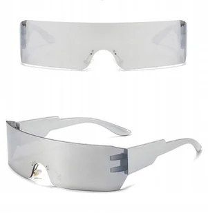Wysokiej jakości srebrne okulary przeciwsłoneczne na imprezę i na miasto w stylu futurystycznym