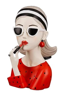 Staranne wykonanie i atrakcyjny design sprawiają, że "Dama z czerwoną szminką" jest nieodzowną częścią akcesoriów domowych. GILDE oznacza jakość i styl, a ta figurka jest kolejnym przykładem wysokiego poziomu rzemiosła i estetyki marki. Figura Lady w okularach przeciwsłonecznych i szmince przypomina nieco słynną ikonę stylu z lat 50-tych, czasów koktajlowych sukienek i plisowanych spódnic. Najbardziej klasyczny i jednocześnie najbardziej rewolucyjny strój mody lat 50. był gotowy.