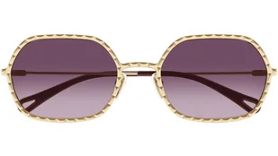 Occhiali da sole Chloé modello CH0231S linea Eyewear forma panto in metallo, codice colore 003 oro lucido classico con aste color oro e lenti color sfumato malva.