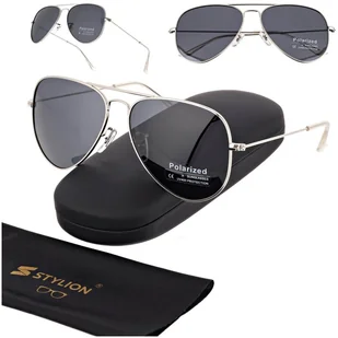 Srebrno-czarne okulary pilotki przeciwsłoneczne polaryzacyjne z filtrem UV400