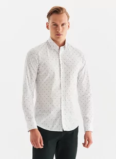 Biała koszula męska w granatowy drobny print