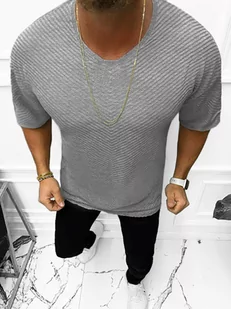 BLUZKA MĘSKA OVERSIZE Z KRÓTKIM RĘKAWEM Z DZIANINY SZARA OZONEE L/2668 - Ozonee