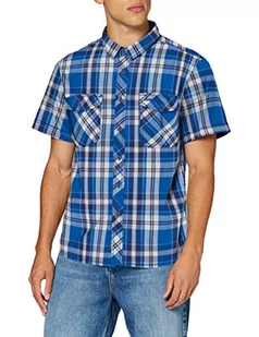 Brandit ROADSTAR koszula z krótkim rękawem, koszula rekreacyjna, w kratkę, męska koszula z drewnianym futerałem, niebieski biały, S