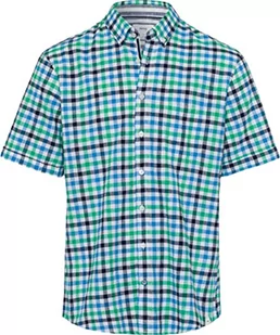 BRAX Męska koszula z krótkim rękawem Dan C Cotton Linen SLUB w kratkę, koszula z krótkim rękawem, Clover, L, koniczyna, L
