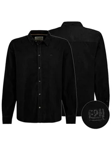 JP 1880 Męska koszula sztruksowa, długi rękaw, minimalny wzór, kołnierz kent, nowoczesny krój koszula, czarny, XXL