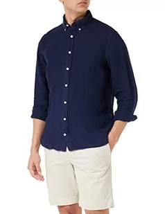 Hackett London Koszula męska barwiona lniana B, granatowy, XXL