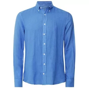 Hackett London Męska koszula barwiona lniana B, NIEBIESKI, XL
