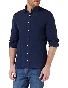 Hackett London Męska koszula barwiona lniana K, granatowy, XS
