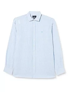 Hackett London Męska koszula bawełniana Linen Bengal, biały/niebieski, 14.5