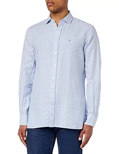 Hackett London Męska koszula bawełniana Linen Bengal, biały/niebieski, 17