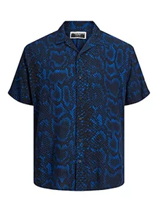 JACK & JONES Męska koszula Jcounnatural Reggie Resort Shirt Ss, Niebieska jona/Aop: czarny Aop, M