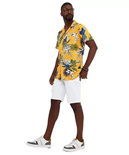 Joe Browns Męska koszula na co dzień z tropikalnym kwiatowym nadrukiem z płaskim kołnierzem i krótkim rękawem, duża, żółta, ŻÓŁTY, L