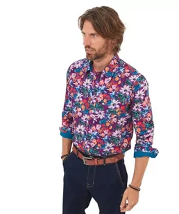 Joe Browns Męska koszula z długim rękawem na guziki w ciemne kwiaty, Fioletowy, XXL