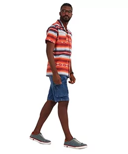 Joe Browns Męska koszula z płaskim kołnierzem w paski Azteckie z krótkim rękawem, średnia, pomarańczowa, zachód słońca, M