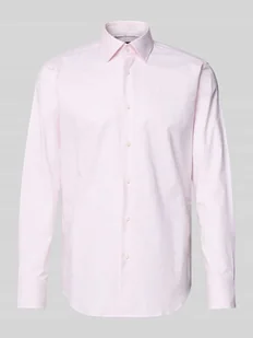 Koszula biznesowa męska BOSS;Model ‘Joe’;Efekt: Wzór na całej powierzchni;Krój: Krój slim fit;Kołnierzyk koszulowy: Kołnierzyk typu kent;Listwa guzikowa: na całej długości;Wzór: