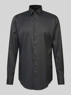 Koszula biznesowa męska BOSS;Czysta wiskoza;Krój regular fit;Model ‘Joe’;Design z długim rękawem;Kołnierzyk typu kent;Sportowe mankiety;Zaokrąglony dół;Listwa guzikowa na całej długości;Długość tyłu w rozmiarze 40L: 85 cm;Szerokość ramion w rozmiarze 40L: 44 cm;Długość rękawa w rozmiarze 40L: 72 cm