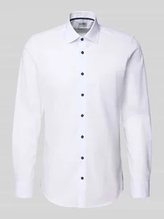 Koszula biznesowa męska OLYMP Level Five;Mieszanka bawełny i elastanu;Krój slim fit;Kołnierzyk typu kent;Listwa guzikowa;Długość tyłu w rozmiarze 40: 80 cm;Szerokość ramion w rozmiarze 40: 50 cm;Długość rękawa w rozmiarze 40: 67 cm