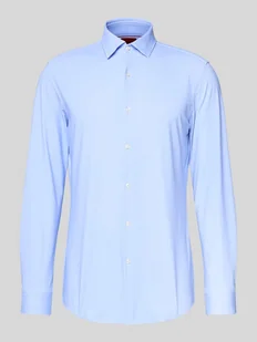 Koszula biznesowa męska HUGO;Model ‘Kenno’;Efekt: Wzór na całej powierzchni;Krój: Krój slim fit;Kołnierzyk koszulowy: Kołnierzyk typu kent;Listwa guzikowa: na całej długości;Zapięcie: