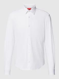 Koszula biznesowa męska HUGO;Mieszanka materiałów z dodatkiem streczu;Krój slim fit;Model ‘Ermo’;Jednolity kolor;Kołnierzyk typu kent;Długość tyłu w rozmiarze M: 73 cm;Szerokość ramion w rozmiarze M: 51 cm;Długość rękawa w rozmiarze M: 66 cm