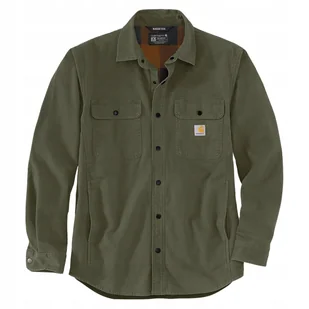 Najważniejsze funkcje i elementy produktu: • Materiał: 98% bawełna / 2% elastan Canvas o gramaturze 8,5 oz/yd2 - 288g/m2 • Dopasowanie: Relaxed Fit • Elastyczny materiał Rugged Flex® zaprojektowany do swobodnego poruszania się • Polarowa podszewka dla zwiększenia utrzymania ciepła • Rozkładany kołnierz • Metalowe zatrzaski z logo Carhartt na całej długości • Mankiety regulowane dwoma zatrzaskami z przedłużonymi plisami • Dwie kieszenie na piersi zapinane na zatrzaski • Lewa kieszeń na piersi z przegródką na długopis • Dwie duże dolne kieszenie z przodu • Naszywką z logo Carhartt Materiały i technologie: Rugged Flex® to elastyczna tkanina, która spełnia określone standardy Carhartt w zakresie rozciągania i wytrzymałości.