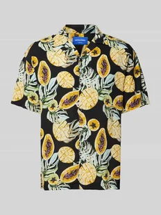 Koszula casualowa męska JACK & JONES;Czysta wiskoza;Krój regular fit;Model ‘JORLUKE TAMPA’;Wzór na całej powierzchni;Kołnierz z połami;Listwa guzikowa na całej długości;Długość tyłu w rozmiarze M: 70 cm;Szerokość ramion w rozmiarze M: 41 cm;Długość rękawa w rozmiarze M: 25 cm