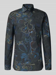 Koszula casualowa męska OLYMP No. Six;Czysta bawełna;Krój regular fit;Kwiatowy nadruk na całej powierzchni;Kołnierzyk typu kent;Design z długim rękawem;Listwa guzikowa na całej długości;Sportowe mankiety;Długość tyłu w rozmiarze 40: 81 cm;Szerokość ramion w rozmiarze 40: 42 cm;Długość rękawa w rozmiarze 40: 68 cm