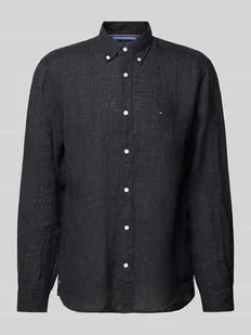 Koszula casualowa męska Tommy Hilfiger;Czysty len;Krój regular fit;Model ‘PIGMENT’;Jednolity kolor;Kołnierzyk typu button down;Listwa guzikowa na całej długości;Wyhaftowane logo;Długość tyłu w rozmiarze M: 78 cm;Szerokość ramion w rozmiarze M: 48 cm;Długość rękawa w rozmiarze M: 68 cm