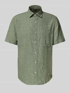 Koszula casualowa męska MCNEAL;Mieszanka lnu i bawełny;Krój regular fit;Kołnierzyk typu kent;Listwa guzikowa;Kieszeń na piersi;Krótki rękaw;Długość tyłu w rozmiarze M: 65 cm;Szerokość ramion w rozmiarze M: 45 cm;Długość rękawa w rozmiarze M: 25 cm